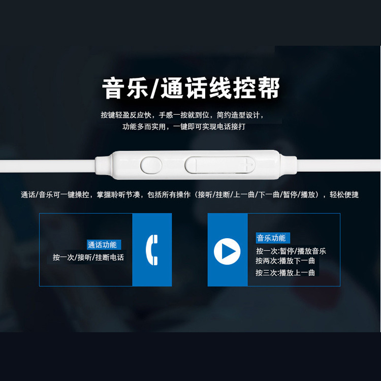 New S6/s7 earphones Mobile phone remote control tuning bass earphones Wholesale with microphone in ear tpe noodle line
