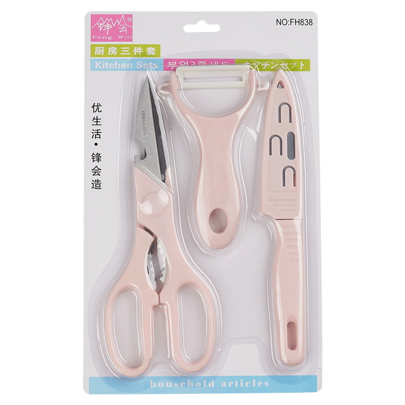 Fruit knife Household peeler Kitchen potato multifunctional cucumber fruit cutter Scissors Vegetable chicken bone scissors 3-piece set