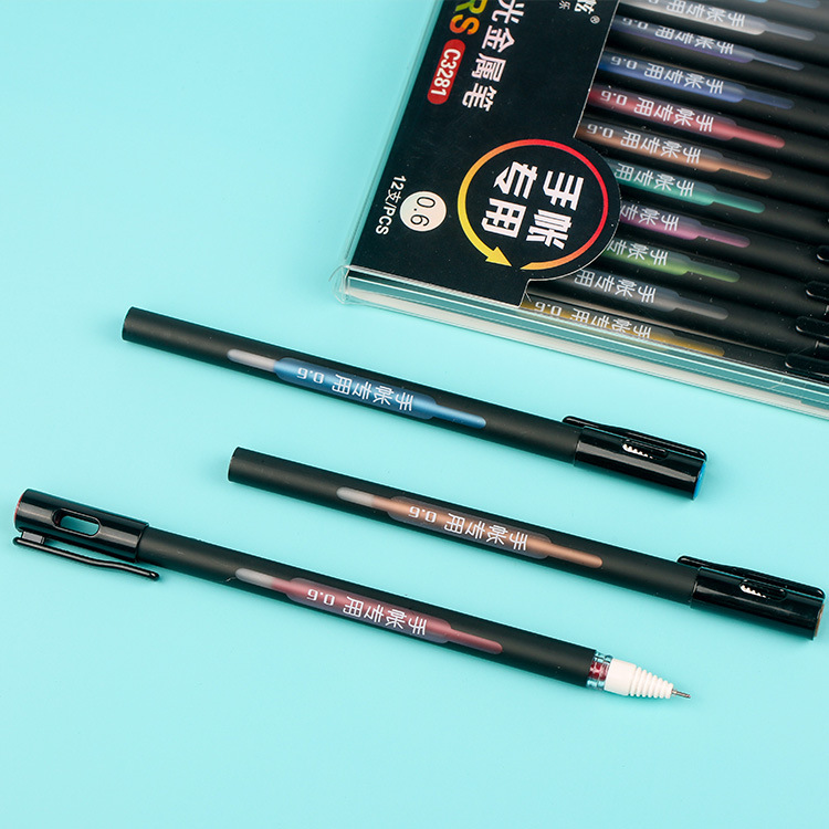 厂家高光笔12色美术绘画水性笔细头金属笔多色套装黑底写白字笔