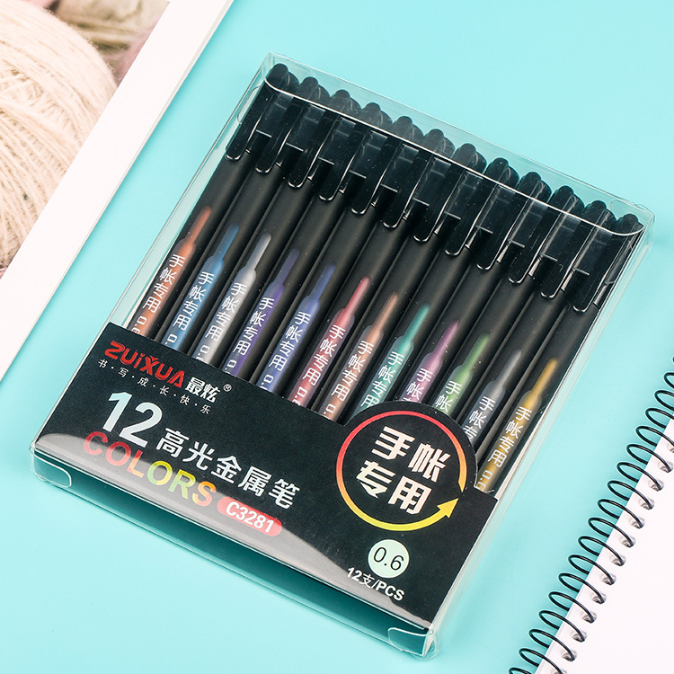 | 包装清单 | 厂家高光笔12色美术绘画水性笔细头金属笔多色套装黑底写白字笔 |
