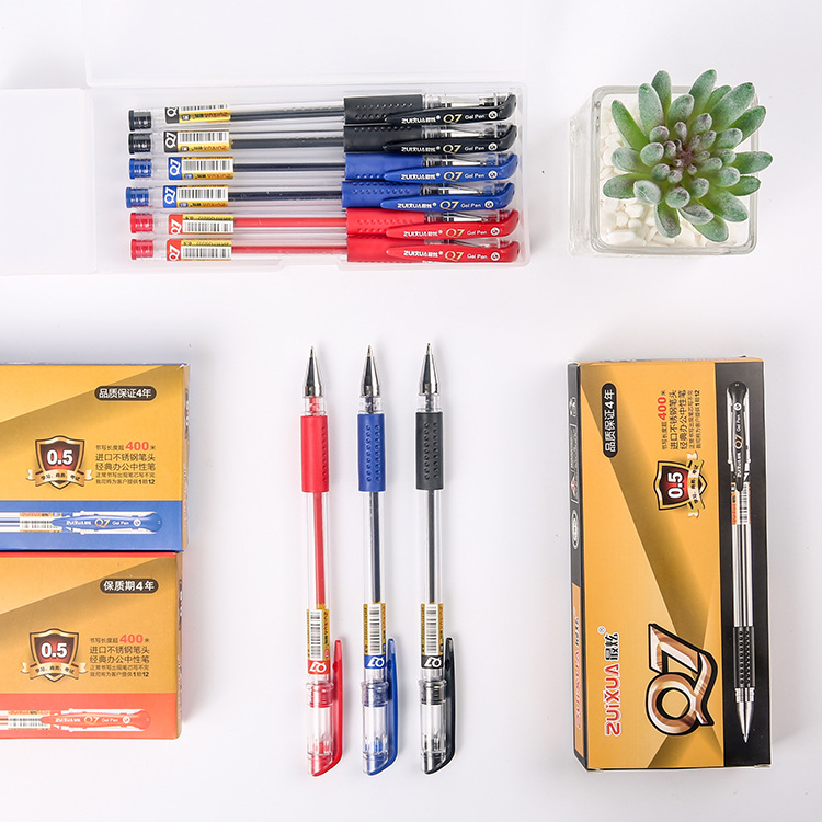 批发Q7中性笔0.5m子弹头黑蓝红水性笔办公文具签字笔散装一件代发