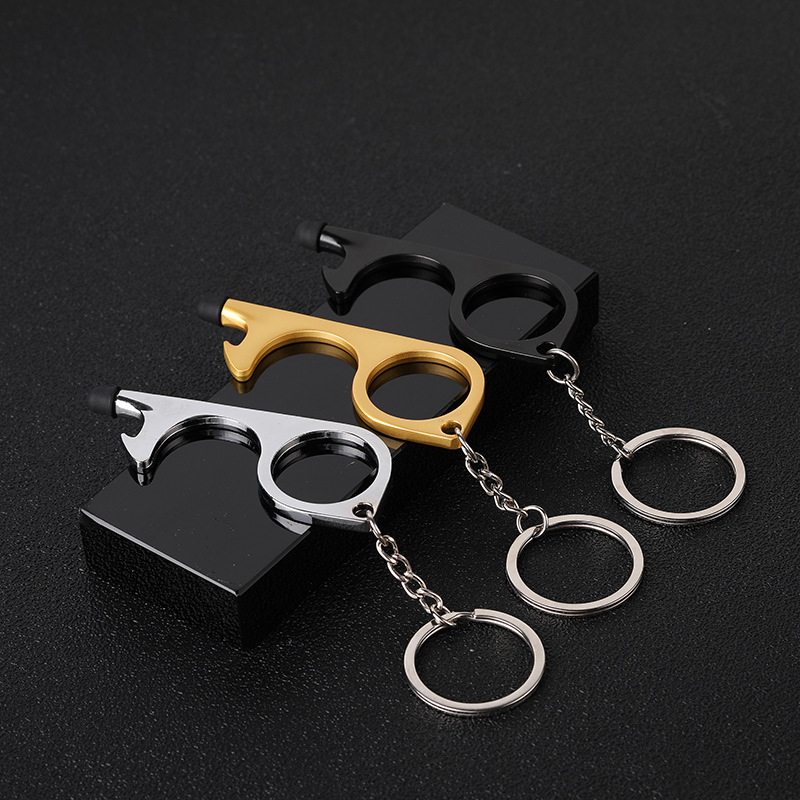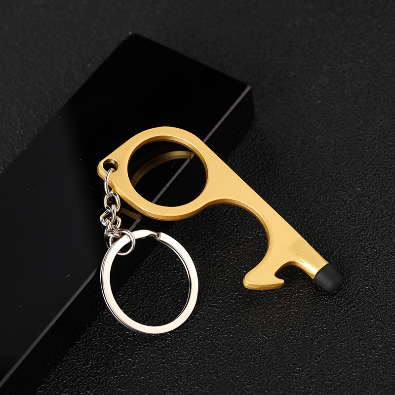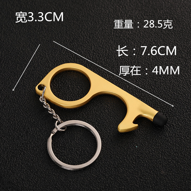 钥匙扣 多工能黄铜防疫接触防护隔离安全小神器:F款金色带触屏/OPP包装