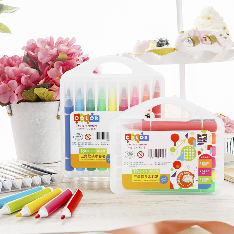 12色三角软头水彩笔可水洗24色儿童绘画不脏手涂鸦笔环保36色批发
