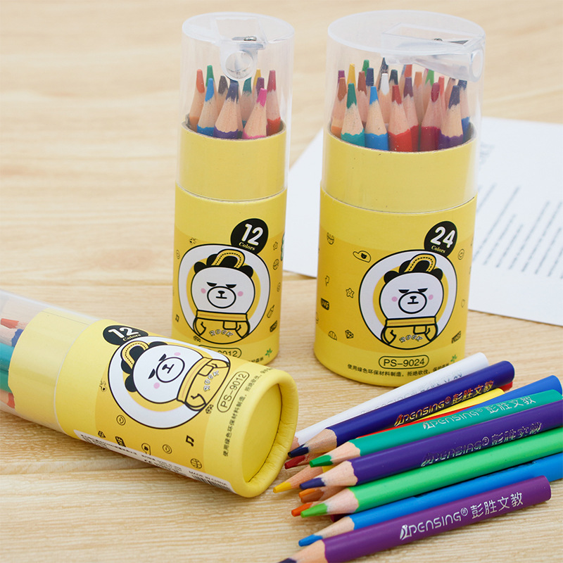 短款3.5寸带卷笔刀12色24色彩铅绘画涂鸦彩色铅笔画笔小礼物批发