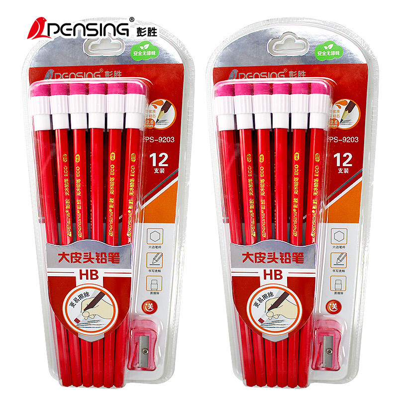 大皮头HB铅笔易擦除12支吸卡装送卷笔刀小学生书写笔厂家直销大头