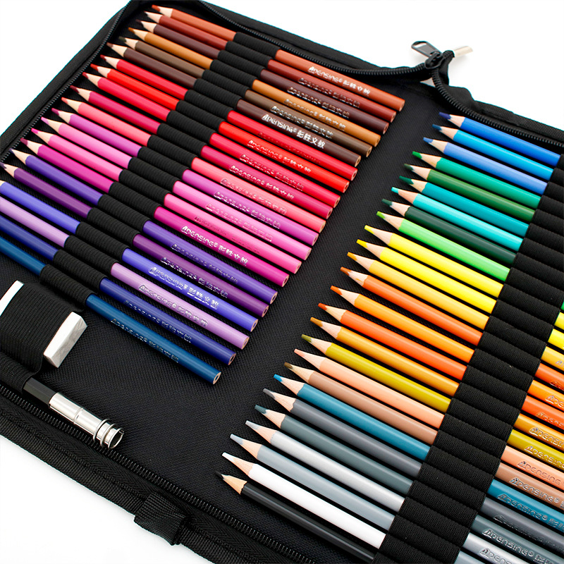 彩铅笔包36孔笔帘48孔彩色铅笔袋72色可折叠拉链画笔包帆布厂家