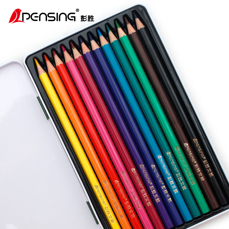 彭胜环保12色彩铅马口铁24色彩色铅笔六角杆72色文具盒铁盒厂家