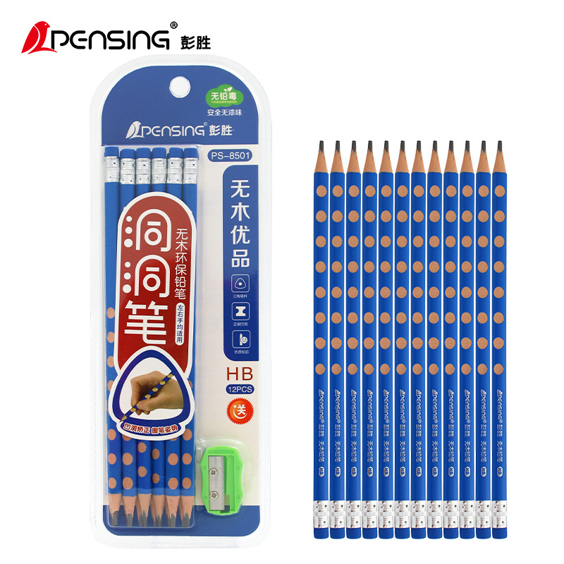 彭胜爆款正姿洞洞铅笔三角杆带橡皮环保无木学生写字笔厂家批发