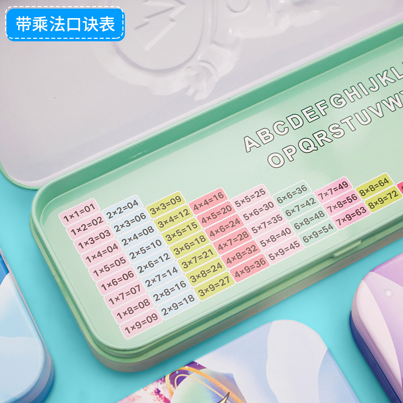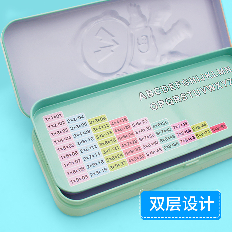 | 包装清单 | 马口铁文具盒双层金属小学生多功能儿童创意卡通带乘法口诀铅笔盒 |
