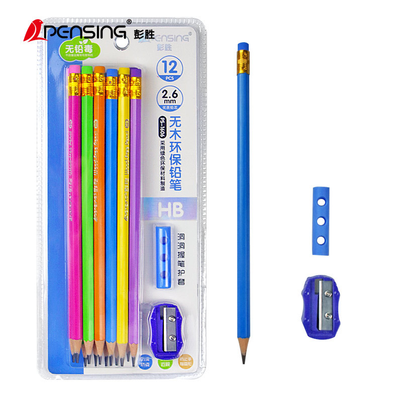 彭胜无木环保铅笔hb小学生写字笔2.6m芯12支吸卡送卷笔刀六角批发