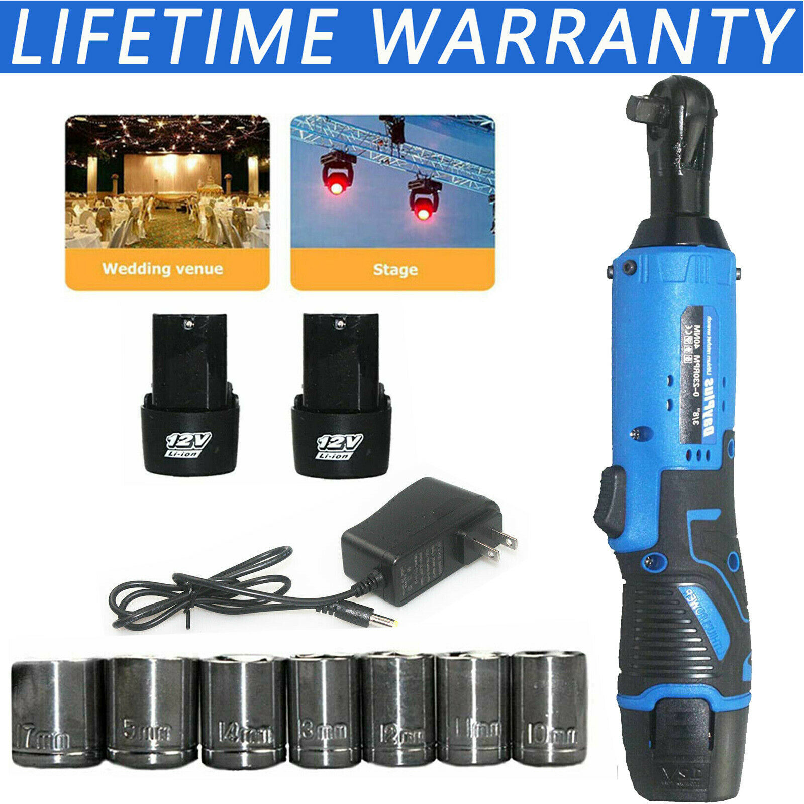 包装清单 90度直角角向扳手电动充电棘轮扳手12V锂电舞台桁架安装工具