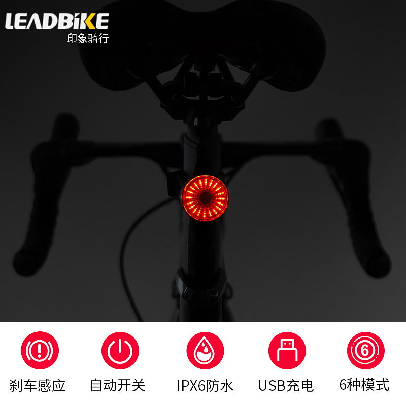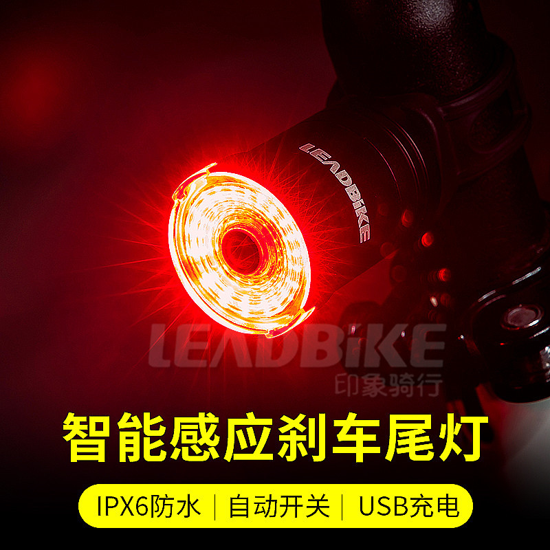 印象骑行新款自行车灯智能感应刹车尾灯USB充电防水夜骑警示灯