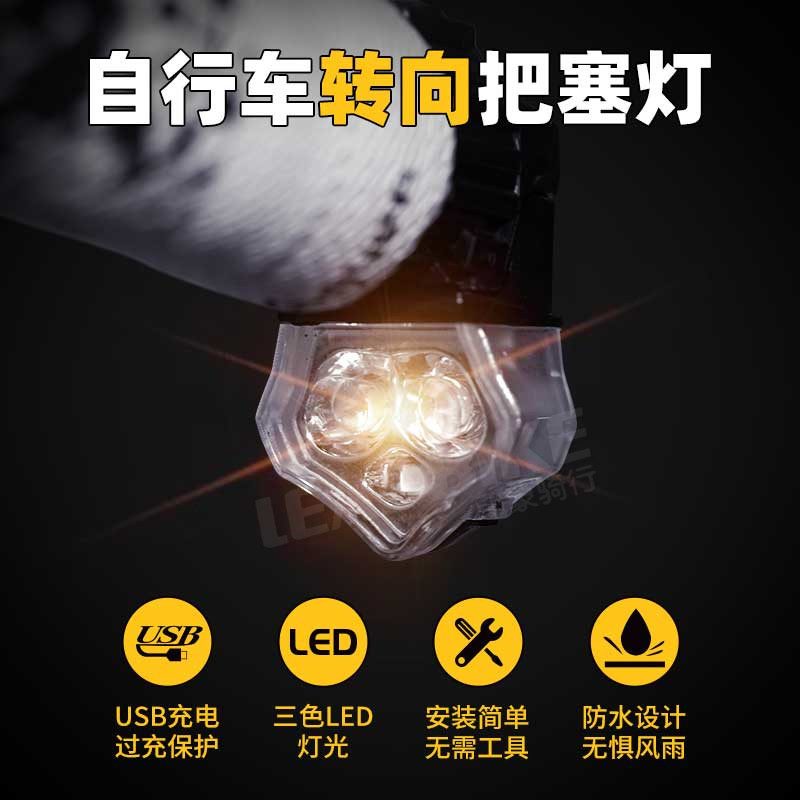 印象骑行USB充电自行车把塞灯LED转向警示灯山地公路车把塞灯LD10