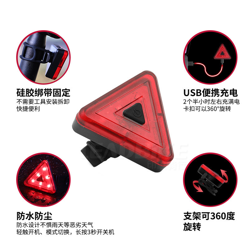 印象骑行leadbike新款自行车尾灯充电高亮三角尾灯骑行配件 A111