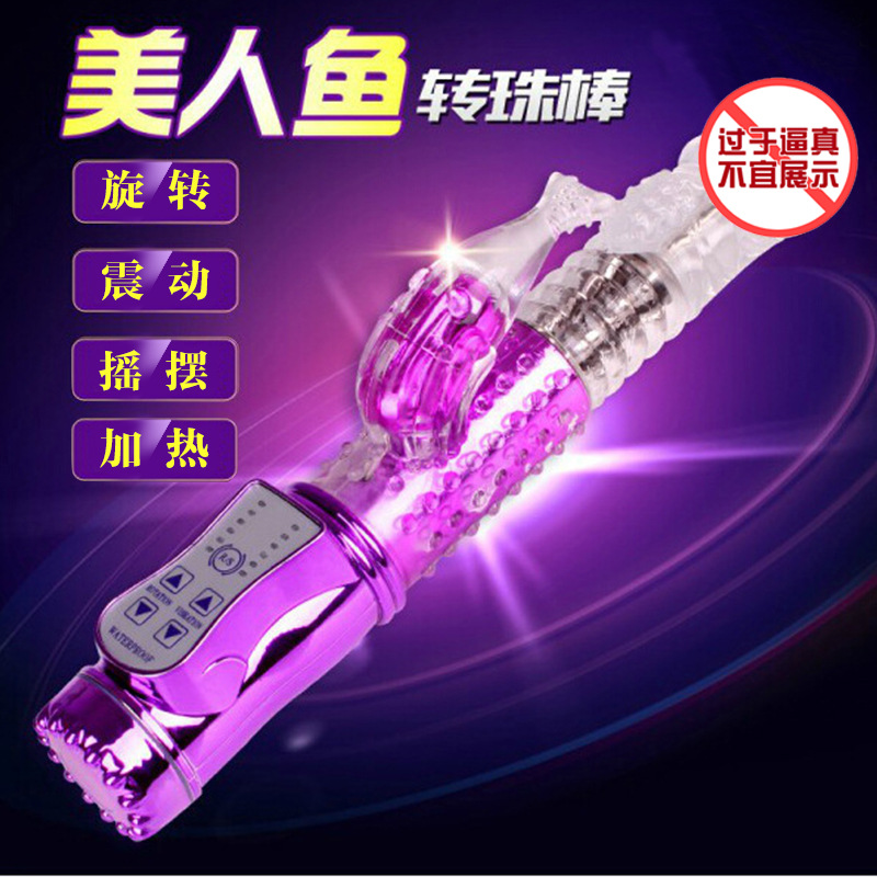 美人鱼转珠棒女用仿真阳具震动摇摆转珠棒女情趣自慰器按摩棒