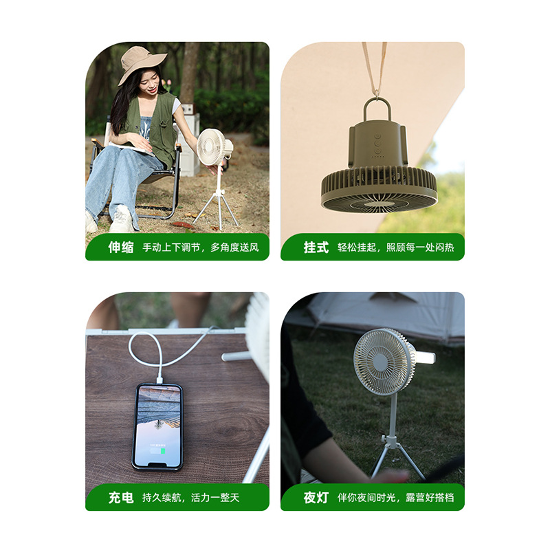 New Tripod Outdoor Multifunctional Camping Fan Portable Electric Fan LED Tent Lighting USB Charging Fan