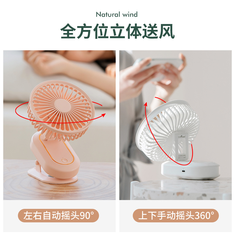 New Shake Head Small Fan Small Mini Portable Rechargeable Clip Fan Practical Silent High Wind Desktop Multi function