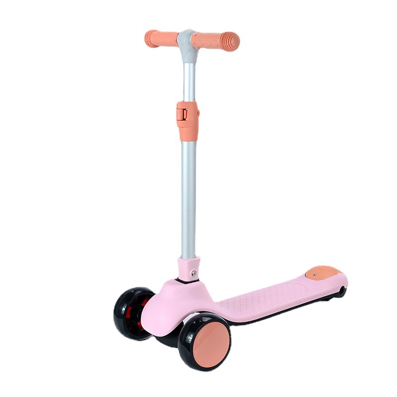 Wholesale children's hand pushed flash three wheel scooters, 3-6-9 years old, one button folding single legged baby scooters, foreign trade