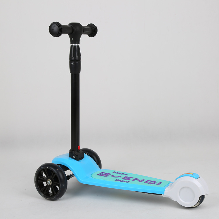 Wholesale children's hand pushed flash three wheel scooters, 3-6-9 years old, one button folding single legged baby scooters, foreign trade