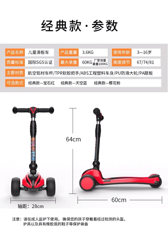 | 包装清单 | 外贸scooter儿童滑板车3-6岁闪光大三轮免安装溜溜踏板车加工定制 |