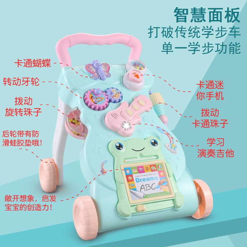 跨境 婴儿0-2岁手推学步车多功能音乐画板儿童玩具助步车可调速