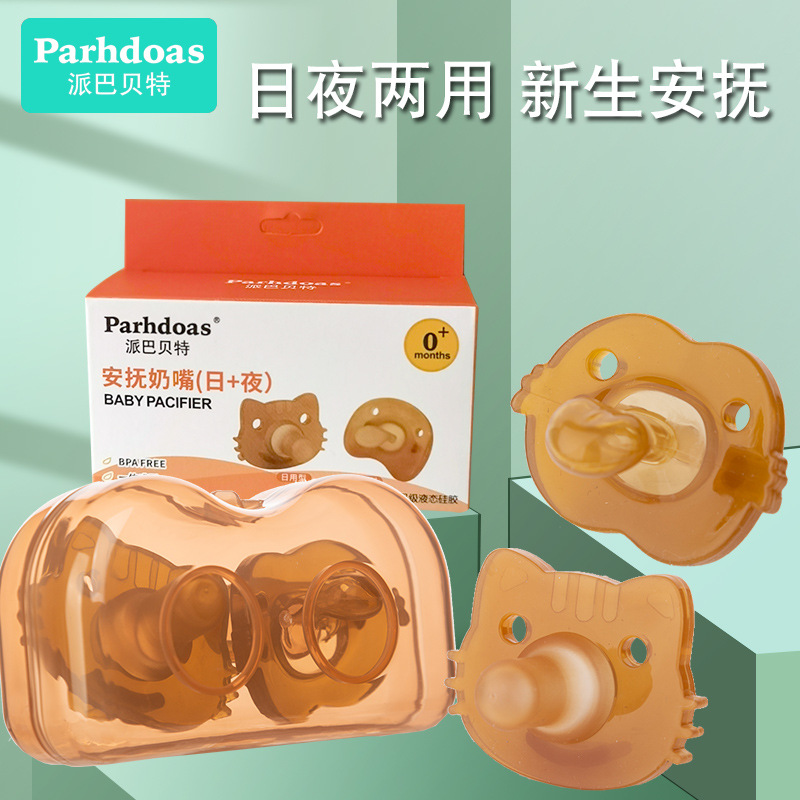 派巴贝特婴儿硅胶安抚奶嘴日夜两用新生儿安睡型奶嘴两个装74001