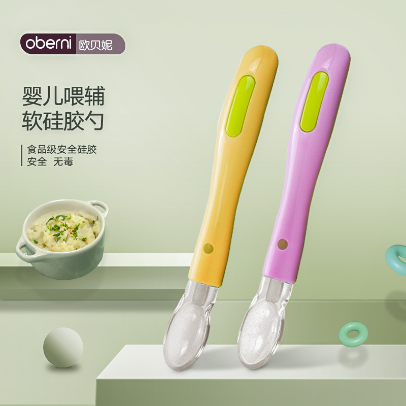欧贝妮 婴儿辅食喂饭勺 硅胶柔软宝宝汤饭小勺汤匙婴幼儿用品厂家