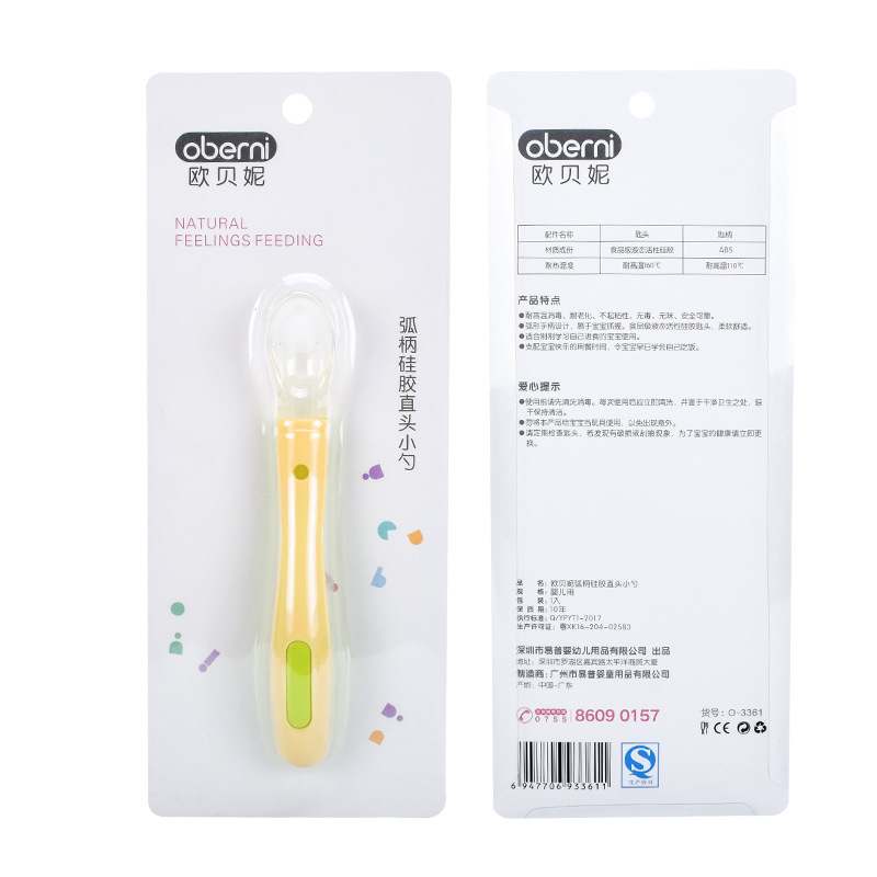 包装清单 欧贝妮 婴儿辅食喂饭勺 硅胶柔软宝宝汤饭小勺汤匙婴幼儿用品厂家