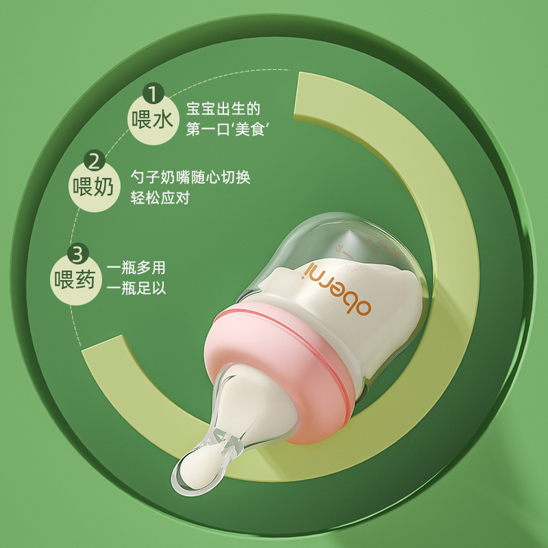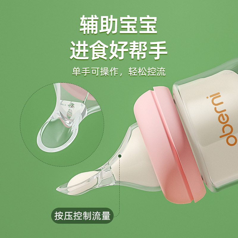 欧贝妮 新生儿宽口奶瓶硅胶勺头婴儿喂养勺子嘴一瓶两用奶瓶配件