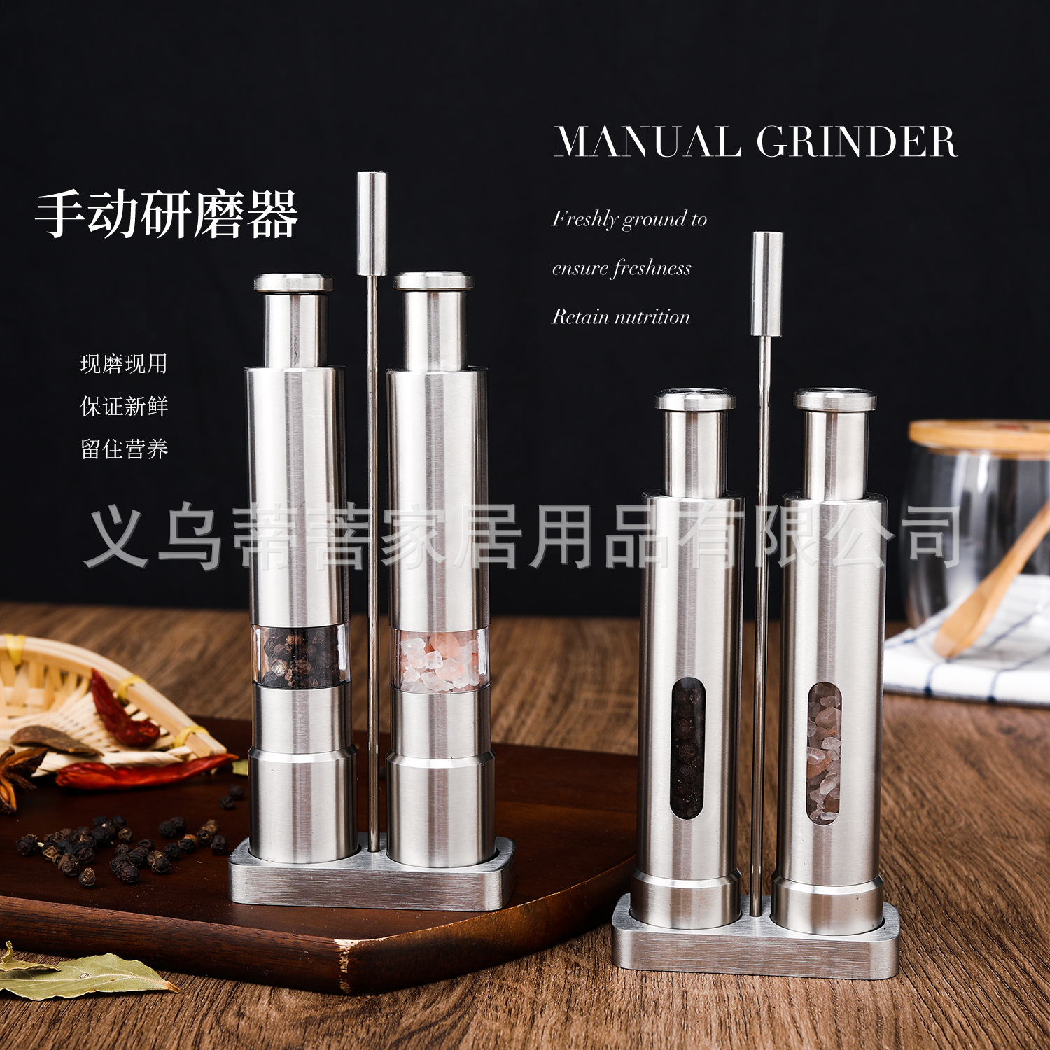 包装清单 亚马逊 手动研磨器 不锈钢按压研磨器 不锈钢套装胡椒磨 胡椒磨