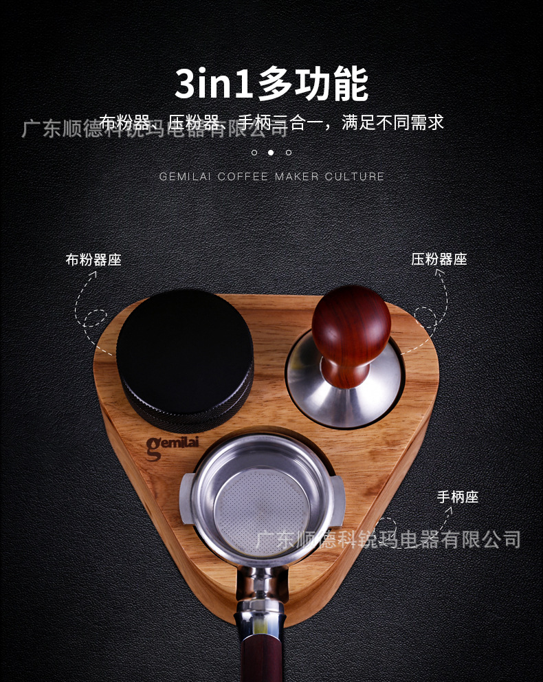 | Packing list | Italian coffee powder press holder, wooden filling and pressing holder, coffee machine handle support seat, bar counter powder press pad, supporting equipment |