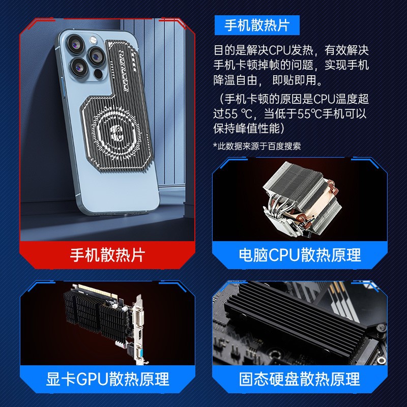 手机散热器半导体背夹贴片制冷物理降温神器铝合金粘粘导热均热板