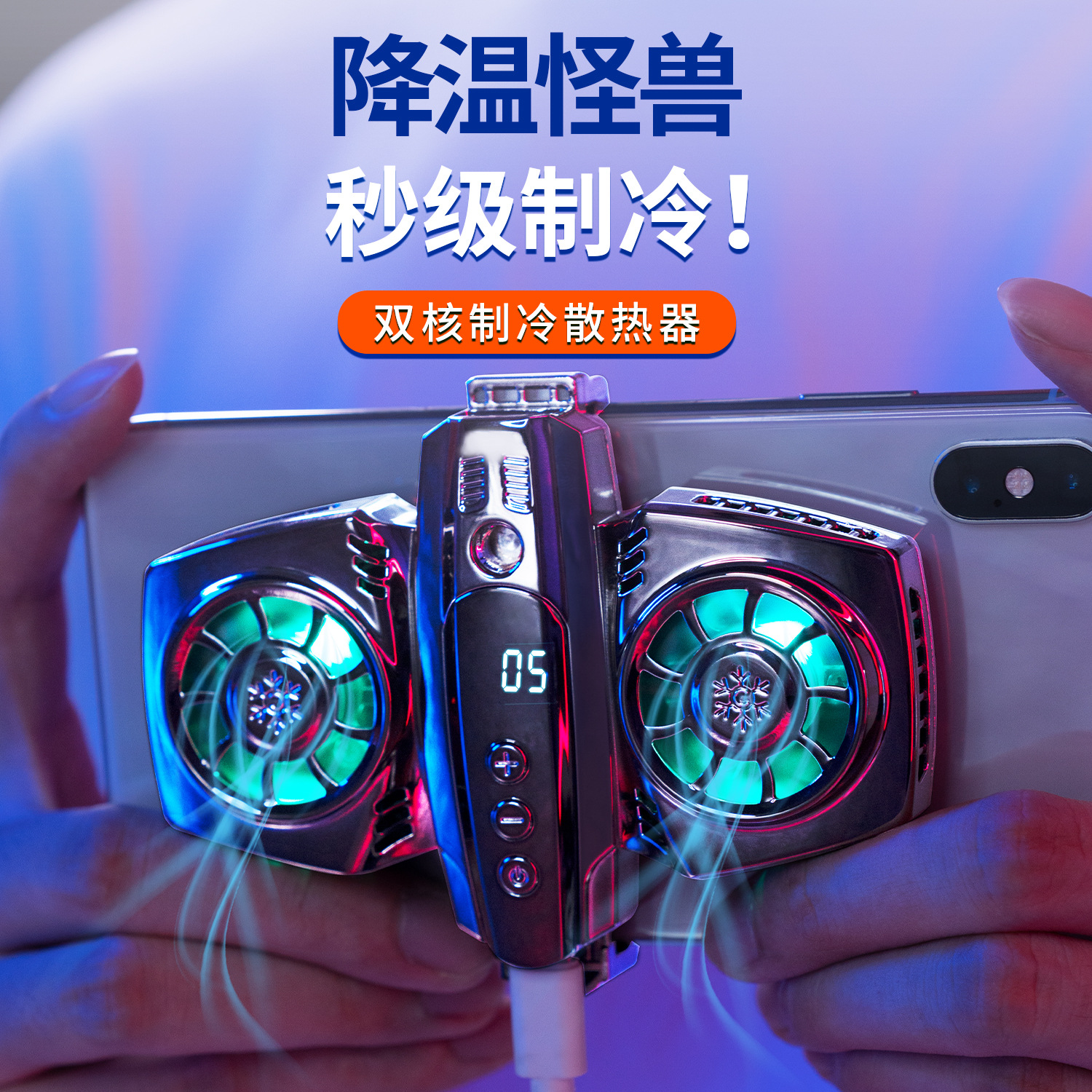 Mobile phone air-cooled radiator portable, compact, fast heat dissipation, dual speed cooling device with back clip, universal