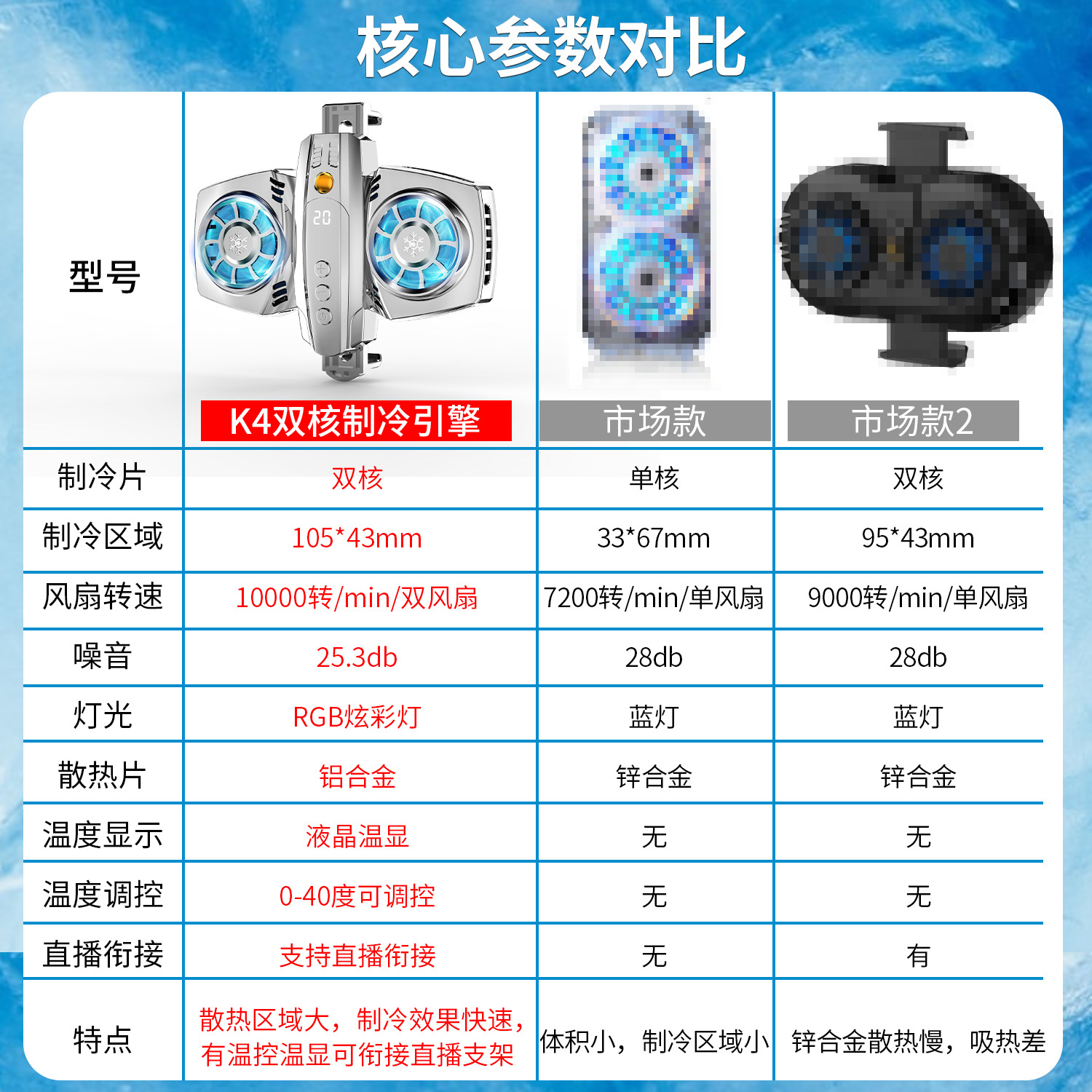Cross border New K4 Dual Fan Semiconductor Refrigeration Mobile Phone Radiator Game Live Broadcast Mobile Phone Cooling God
