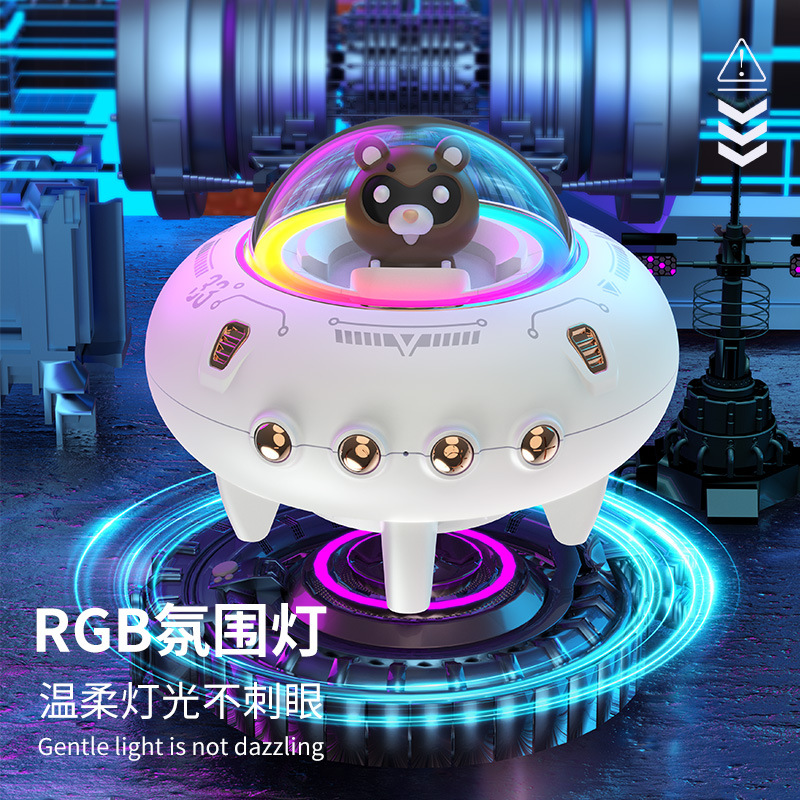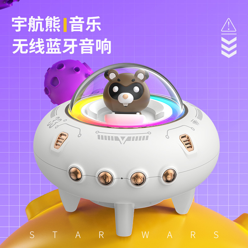 Creative Spaceship Bluetooth Speaker Colorful Lights Mini Cartoon Decoration Speaker Desktop Card Audio Gift Wholesale
