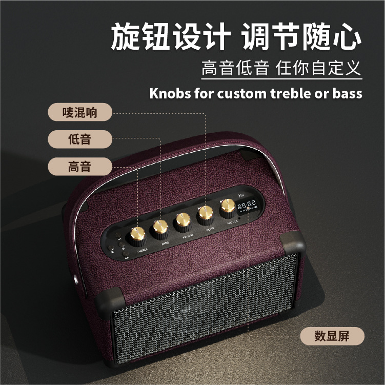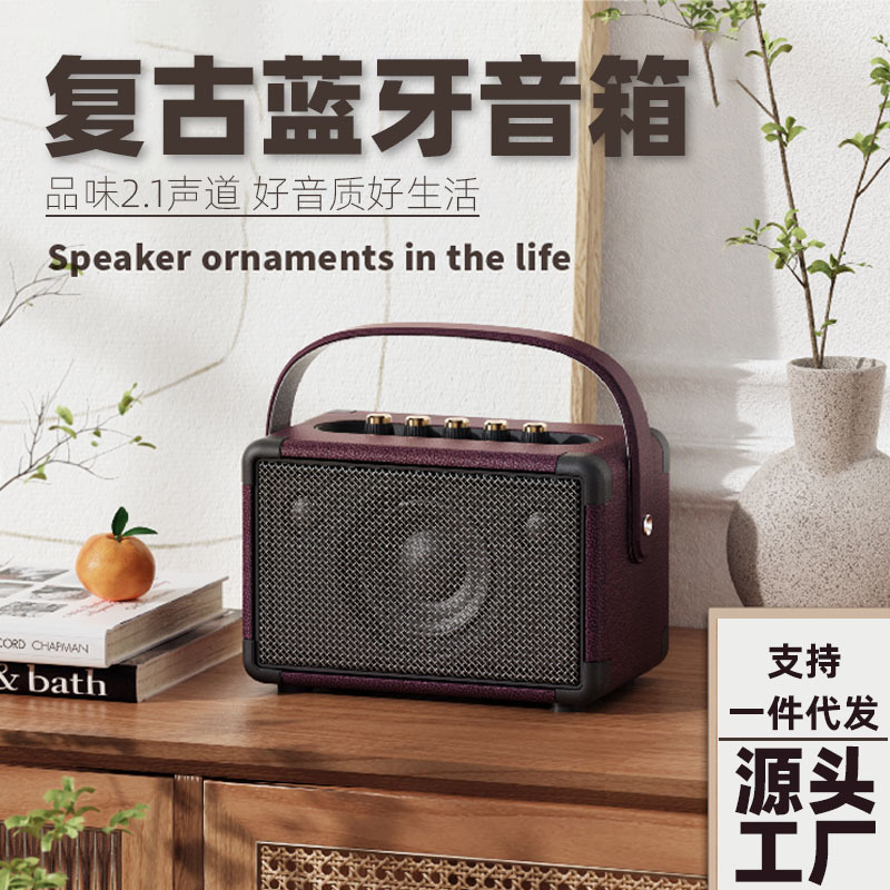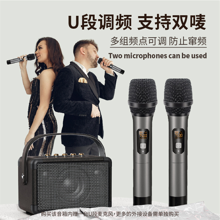 55W大功率音箱 插卡手提便携户外广场舞音响 复古双唛K歌蓝牙音箱