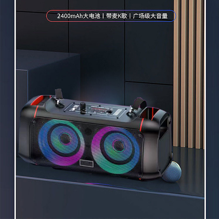 Outdoor wireless Bluetooth speaker with high volume, square dance sound, karaoke, dazzling lights, speaker, portable dual speakers