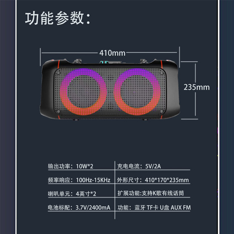 包装清单 户外无线蓝牙音箱大音量广场舞音响K歌炫彩灯光音箱便携式双喇叭