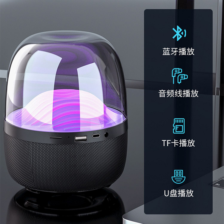 | 包装清单 | 无线蓝牙音响插卡U盘七彩灯光音箱水晶琉跨境礼品便携式低音炮 |