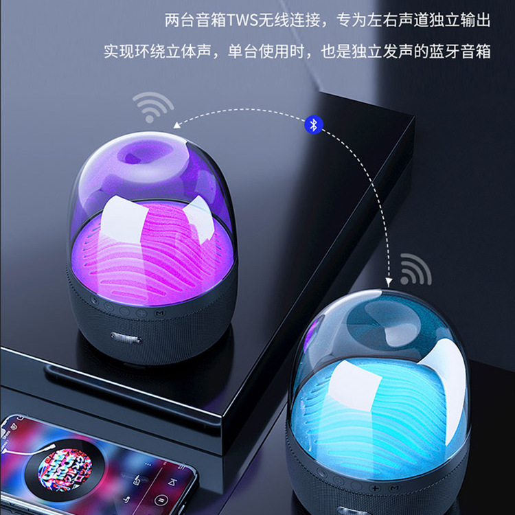 无线蓝牙音响插卡U盘七彩灯光音箱水晶琉跨境礼品便携式低音炮