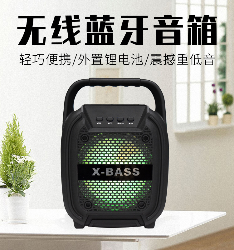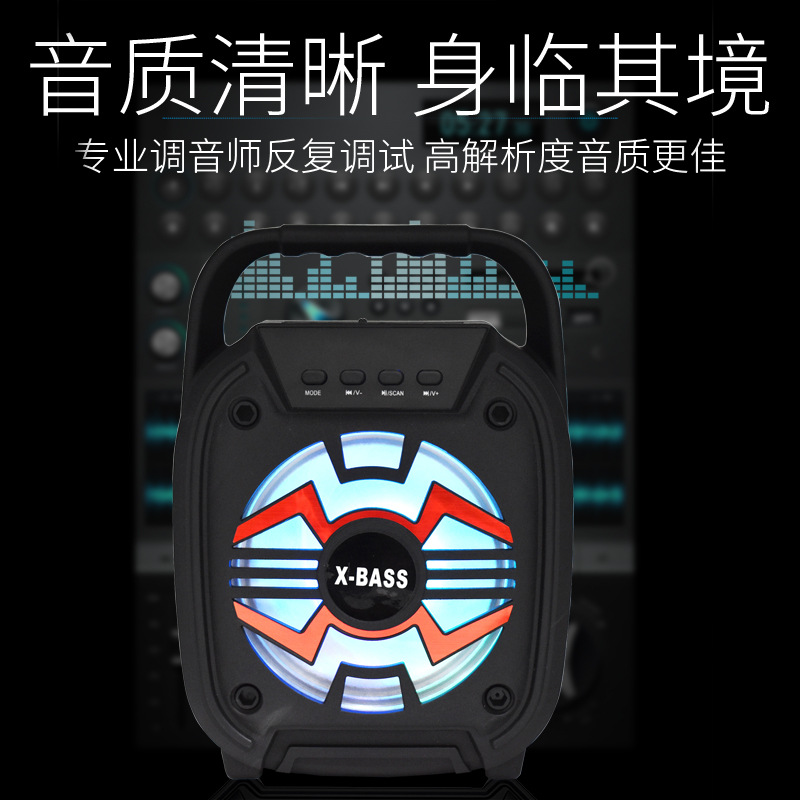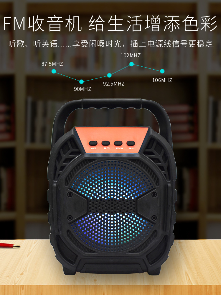 外贸便携式手提6.5寸蓝牙音响插卡k歌重低音炮收音机七彩音箱批发