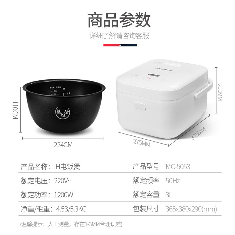 | Packing list | Macaiiroos MC-5053 IH intelligent Rice cooker household reservation electromagnetic surround heating |