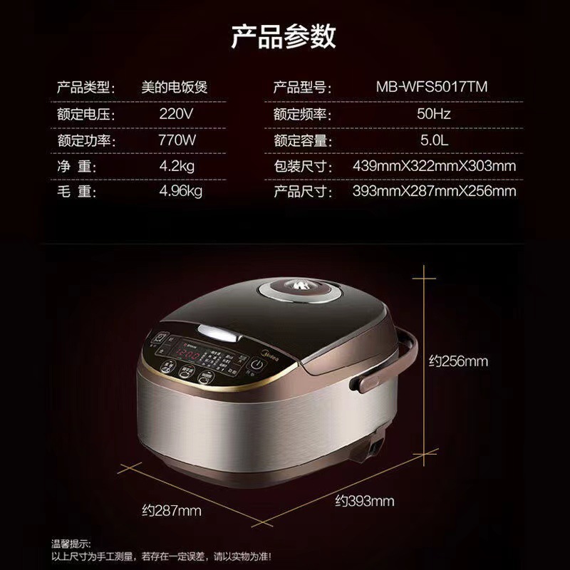 | Packing list | Midea | 5L large capacity Rice cooker intelligent multi-function household electric cooker 4-8 people L official genuine joint guarantee |