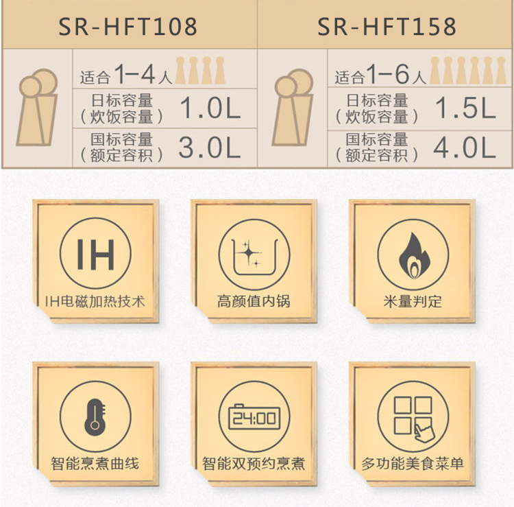松下电饭煲SR-HFT108 IH电磁加热智能双预约3L 新品