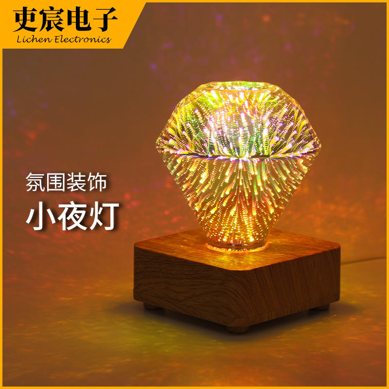 新款3d钻石玻璃小夜灯床头卧室usb插电睡眠氛围灯