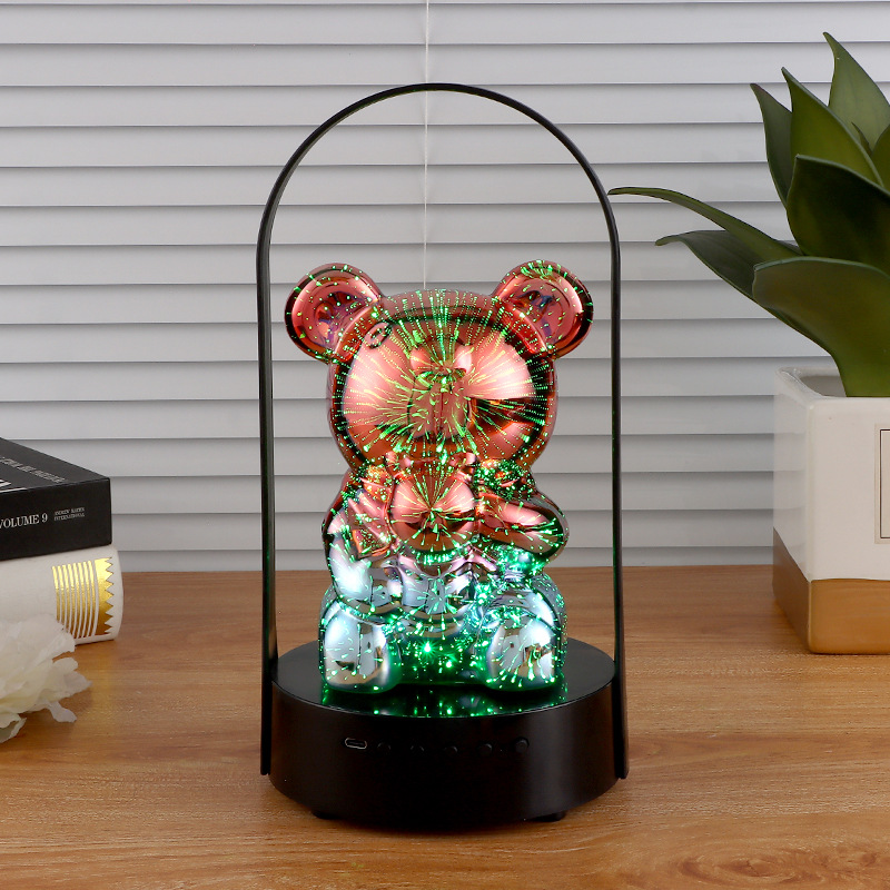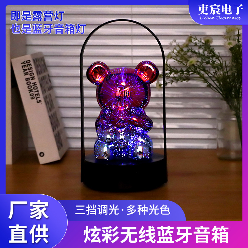 烟花小熊灯厂家直供手提便携式蓝牙音箱可旋转七彩变光无线台灯