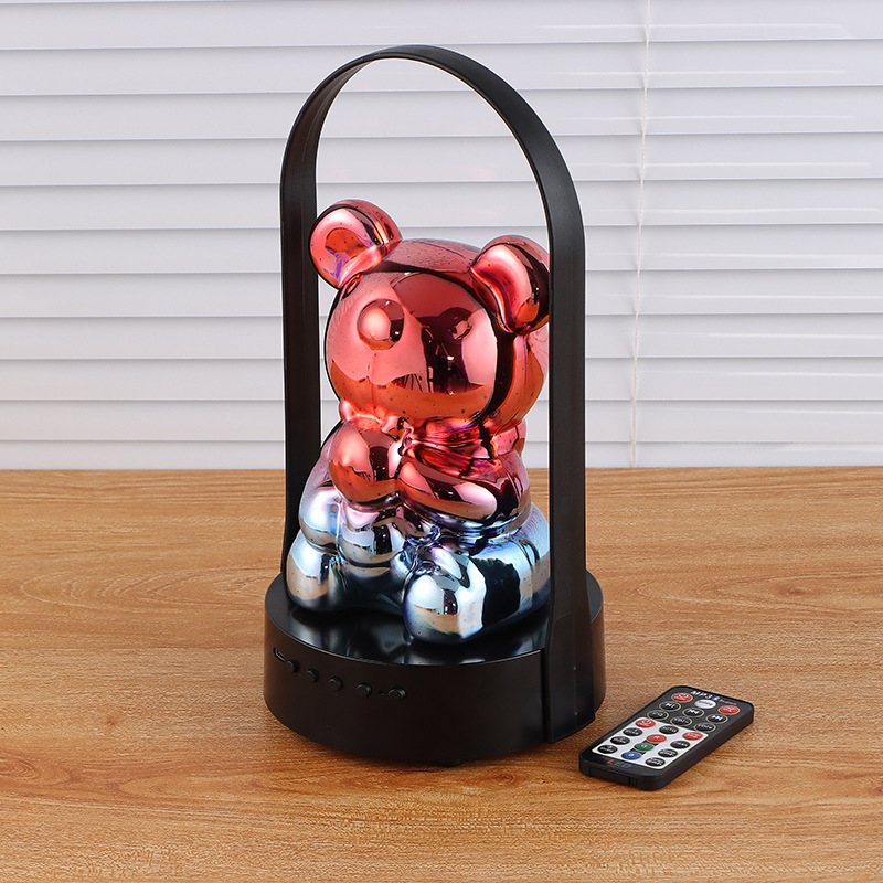 Fireworks Little Bear Lamp Factory Directly Supplied Portable Bluetooth Speaker with Rotating Colorful Dimming Wireless Table Lamp