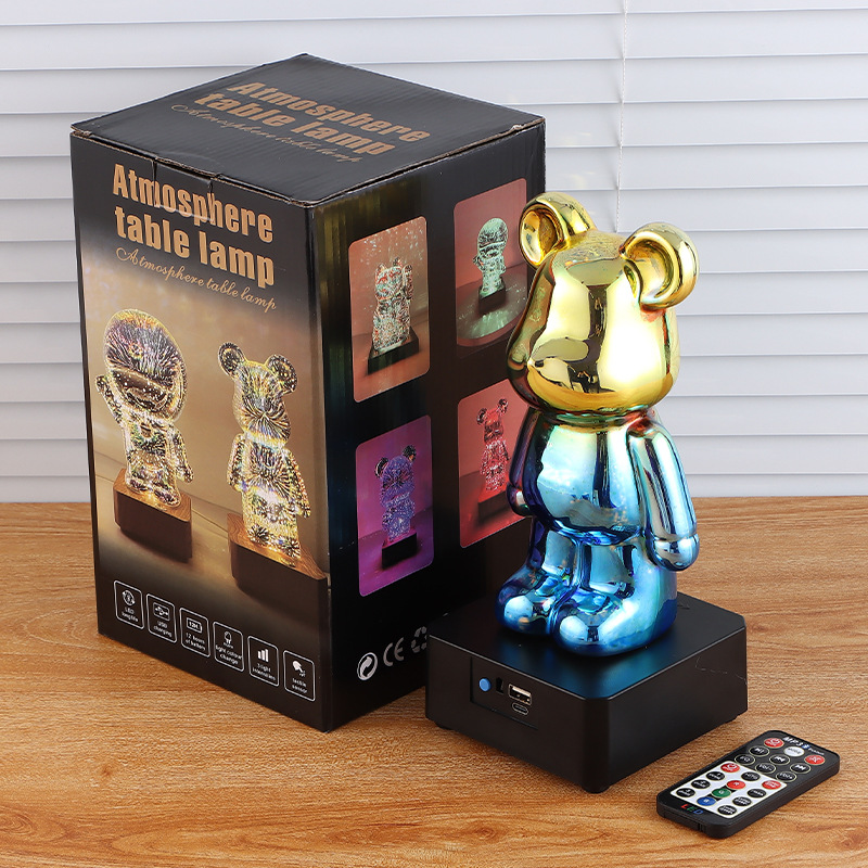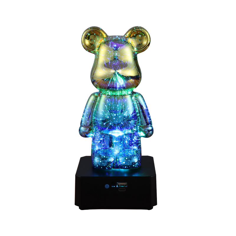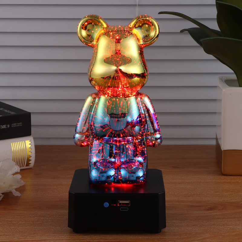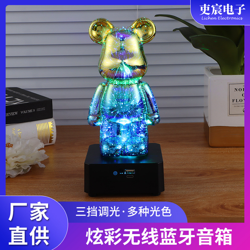 烟花暴力熊炫彩小夜灯桌面摆件蓝牙音响七彩变光浪漫氛围灯