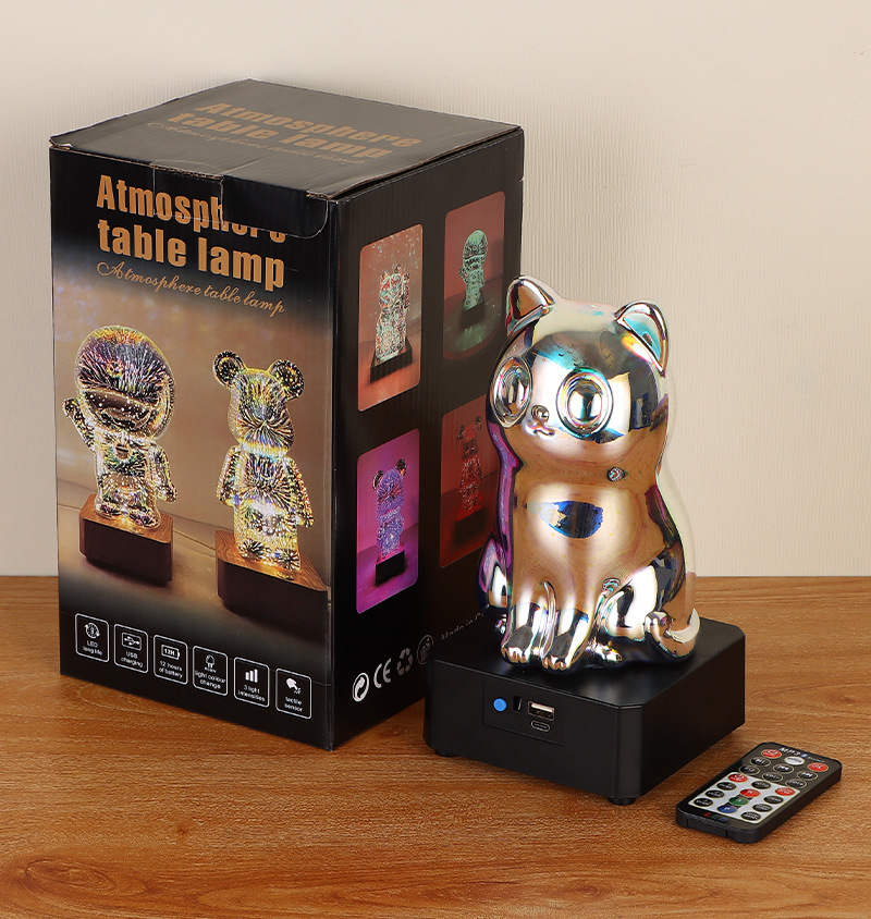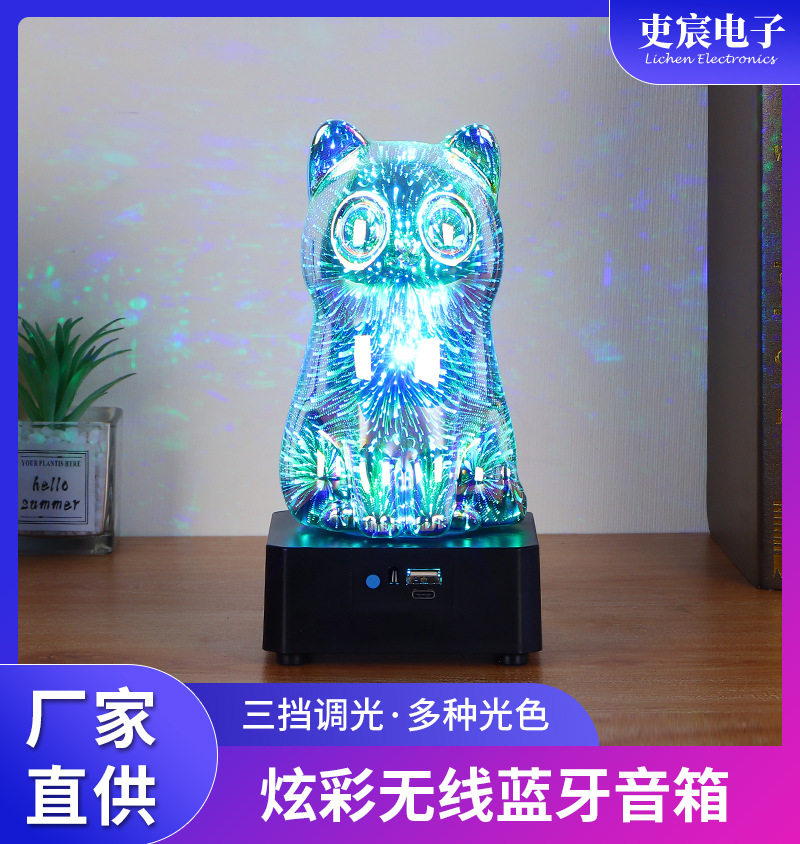 包装清单 轻奢创意发光猫咪蓝牙音箱卧室床头客厅桌面七彩3D玻璃氛围小夜灯