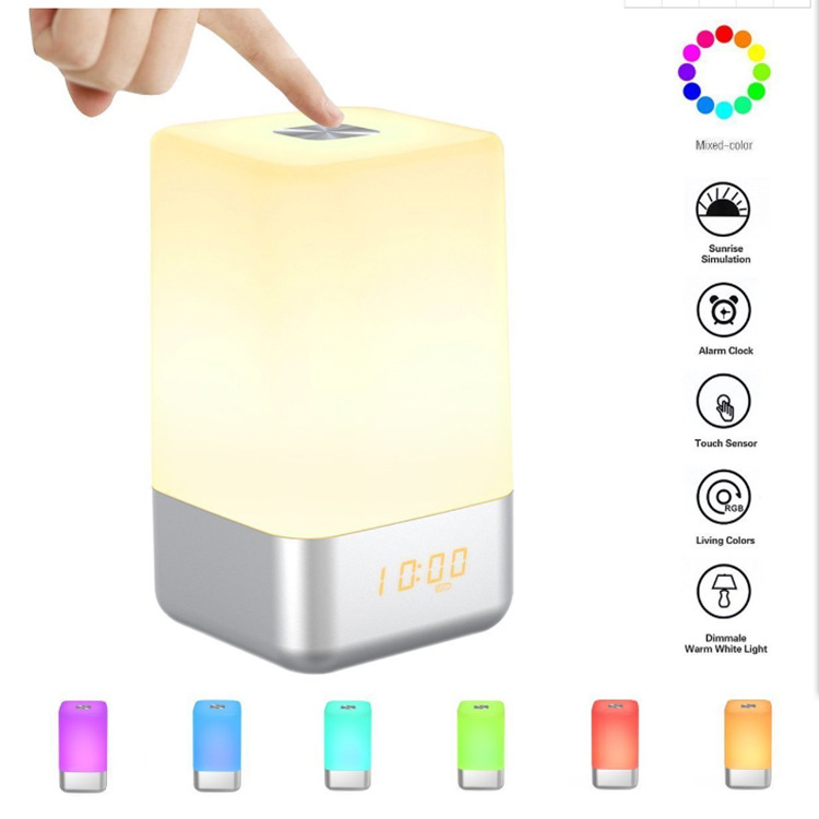 新款多功能电子闹钟LED床头小夜灯 现货七彩自然唤醒灯厂家批发